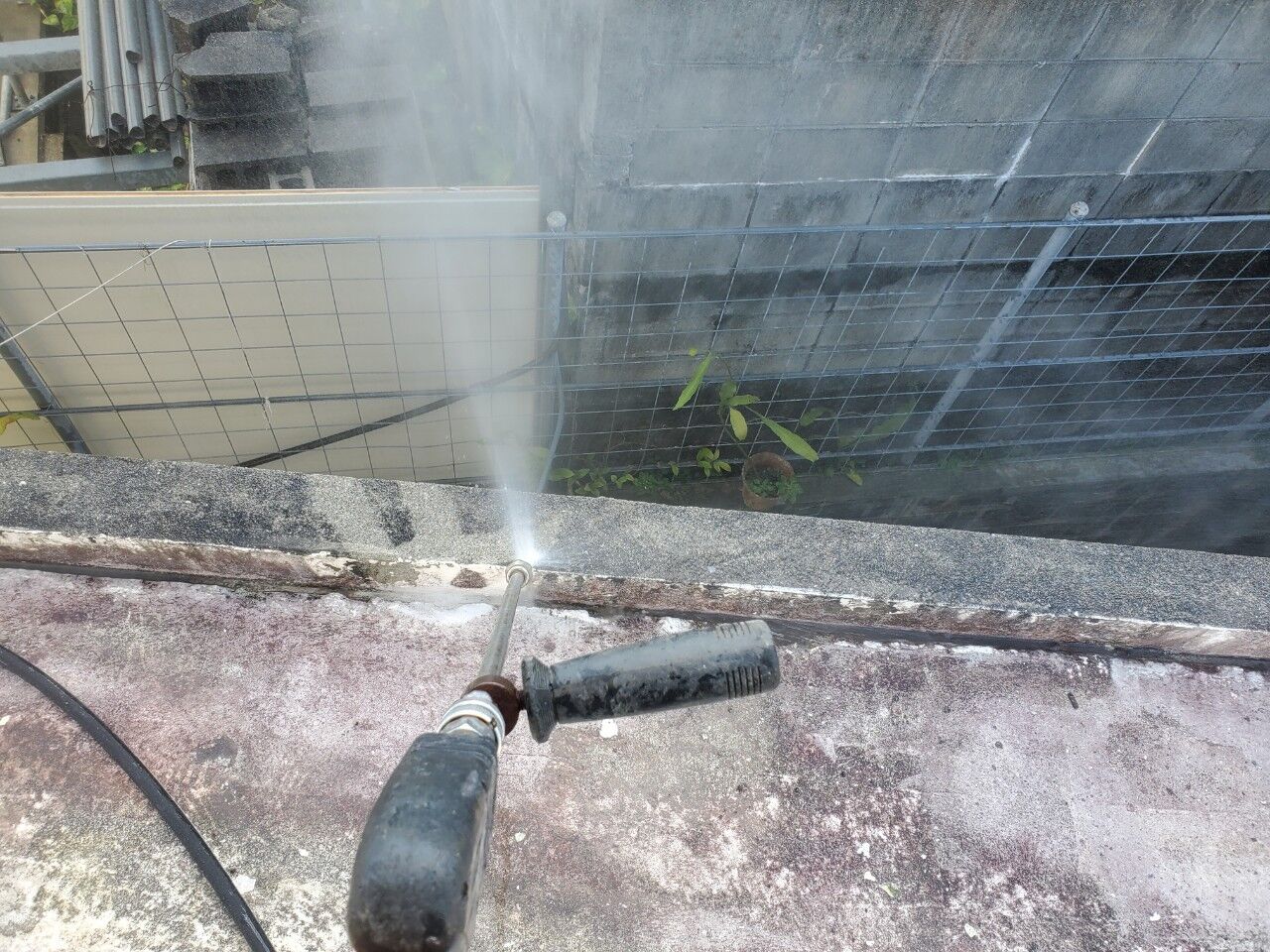 まず初めに屋上全体を高圧洗浄していきます。